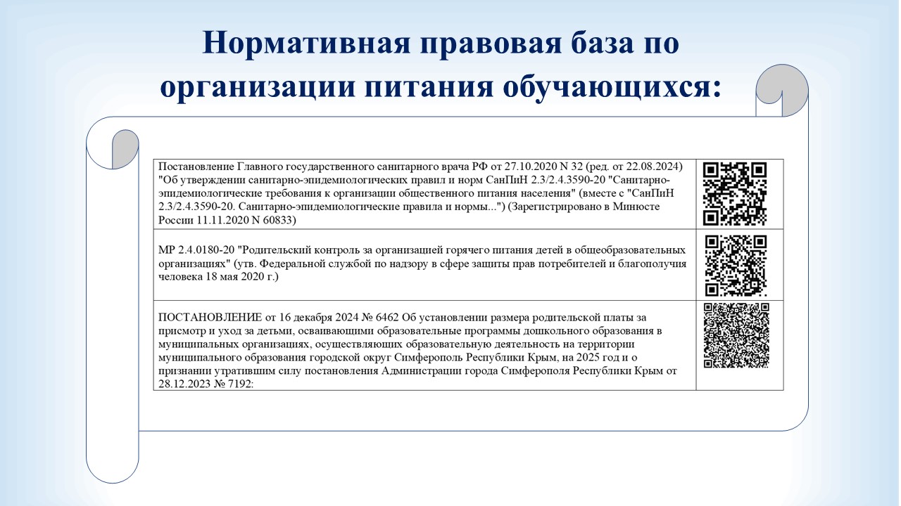 В соответствии с ПОСТАНОВЛЕНИЕМ от 16 декабря 2024 № 6462 Об установлении размера родительской платы за присмотр и уход за детьми, осваивающими образовательные программы дошкольного образования в муниципальных организациях, осуществляющих образовательную деятельность на территории муниципального образования городской округ Симферополь Республики Крым, на 2025 год и о признании утратившим силу постановления Администрации города Симферополя Республики Крым от 28.12.2023 № 7192: