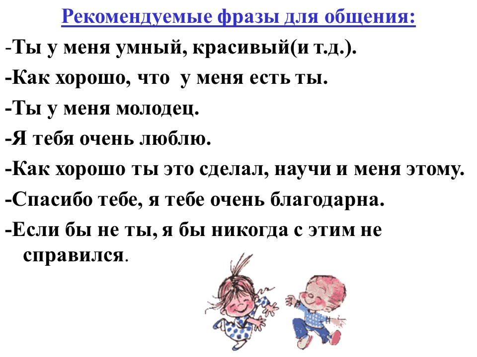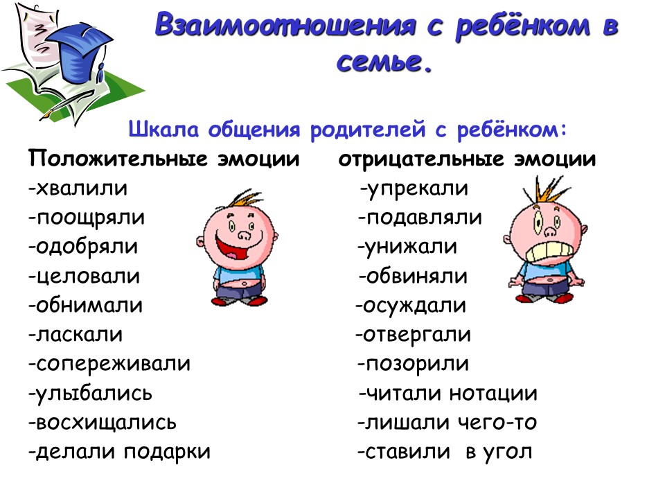 Любовь и физическое присутствие родителей должно всегда сопровождаться благожелательным эмоциональным фоном. Им необходимо быть внимательными, стараясь правильно чередовать поставленные требования с поощрениями и наказаниями