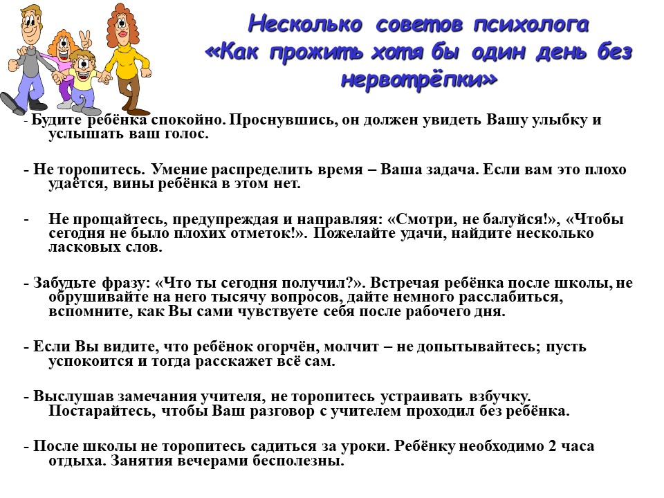 Советы психолога родителям будущих первоклассников