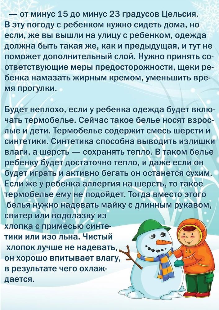 Нужно помнить, что на прогулку при погоде от -5 до – 20 дошкольника необходимо одевать в четыре слоя одежды.