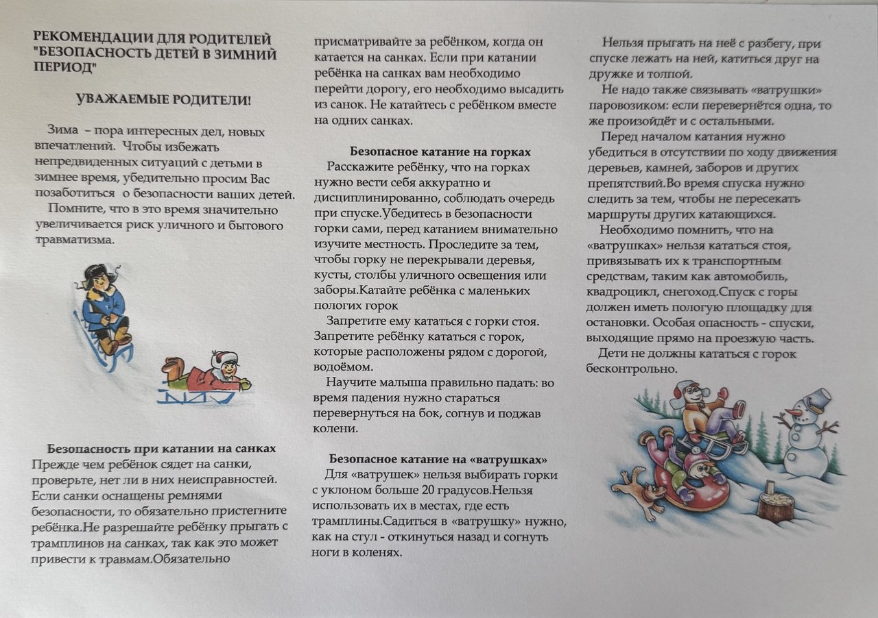 Зима – пора интересных дел, новых впечатлений. Чтобы избежать непредвиденных ситуаций с детьми в зимнее время, убедительно просим Вас позаботиться о безопасности ваших детей.