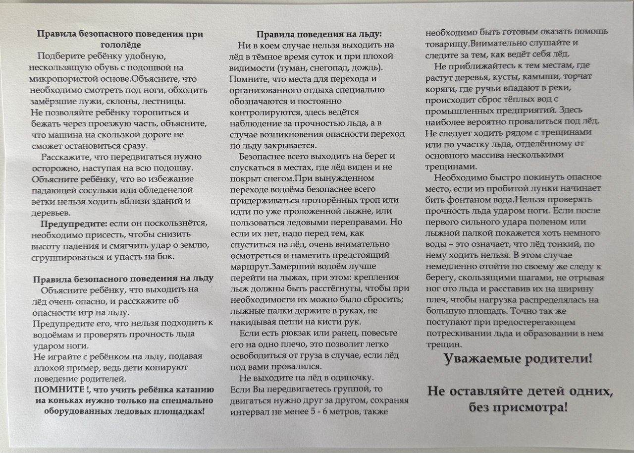 Соблюдайте элементарные правила безопасности на льду, помните, безопасным лед считается при толщине не менее 12 см.